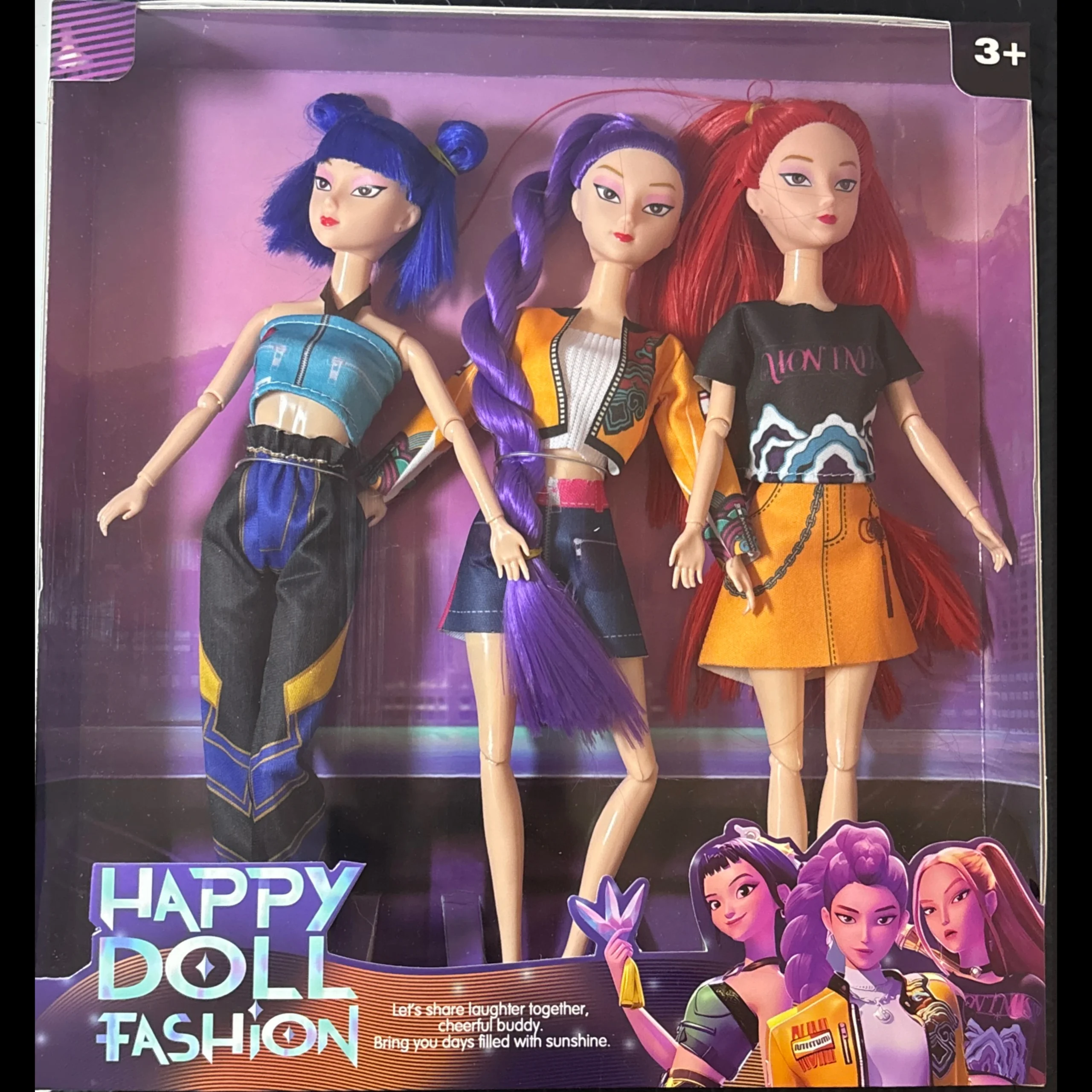 El Pack de Muñecas Guerreras K-Pop reúne por primera vez a Rumi, Mira y Zoey, tres personajes inspirados en dibujos de guerreras K-Pop estilo Hantrix. Cada muñeca combina una estética urbana con una personalidad fuerte y bien definida, creando un grupo equilibrado donde liderazgo, estrategia y energía se complementan.